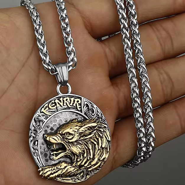 Halskette Wolf Edelstahl 60 cm