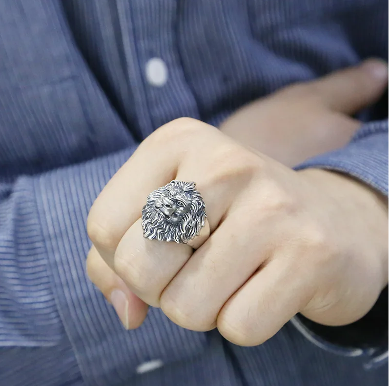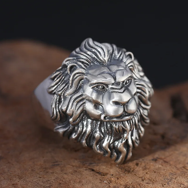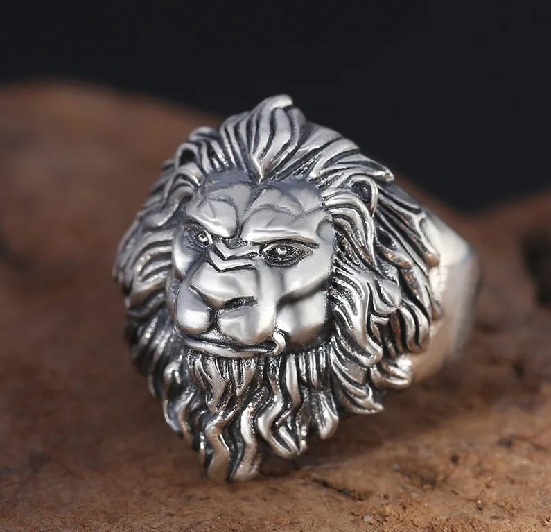 Produktinformationen "Löwenring Edelstahl Silber Ring Löwe Schmuck Herrenring Größenverstellbar"