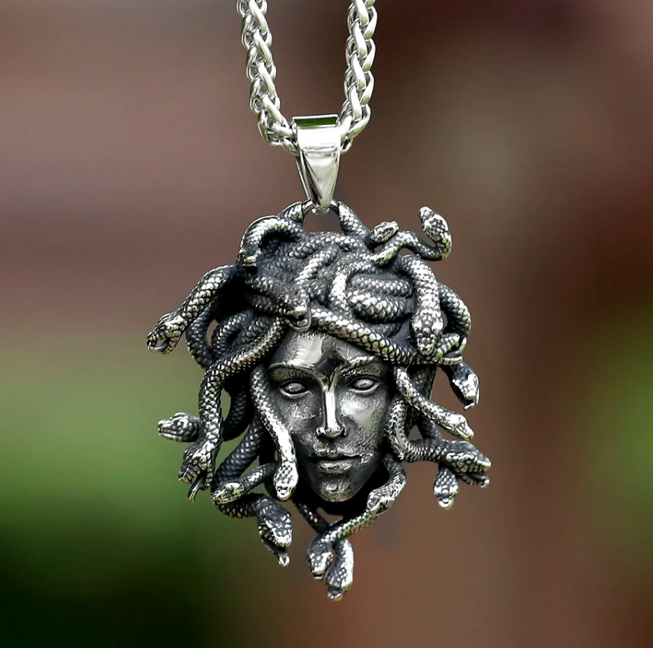 Produktinformationen "Medusa Halskette Edelstahl Gorgone Schlangen griechische Mythologie silber 60 cm"