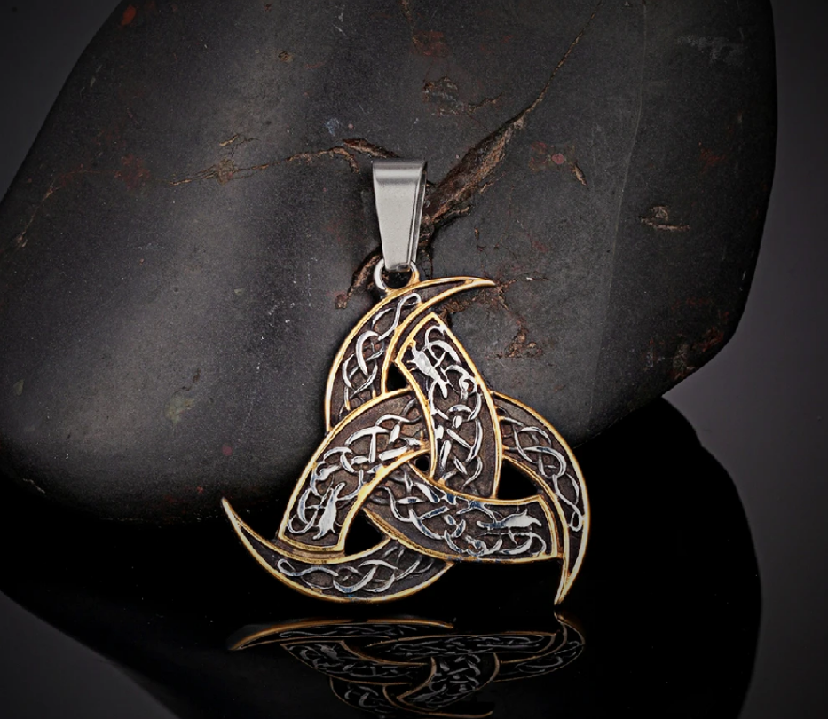 Nordische Halskette Keltischer Knoten Wikinger Amulett Edelstahl Gold 60 cm