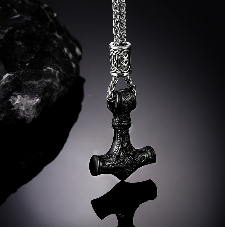 Produktinformationen "Nordische Halskette Thors Hammer Keltisch Mjölnir Vegvisir Wikinger schwarz 60 cm"