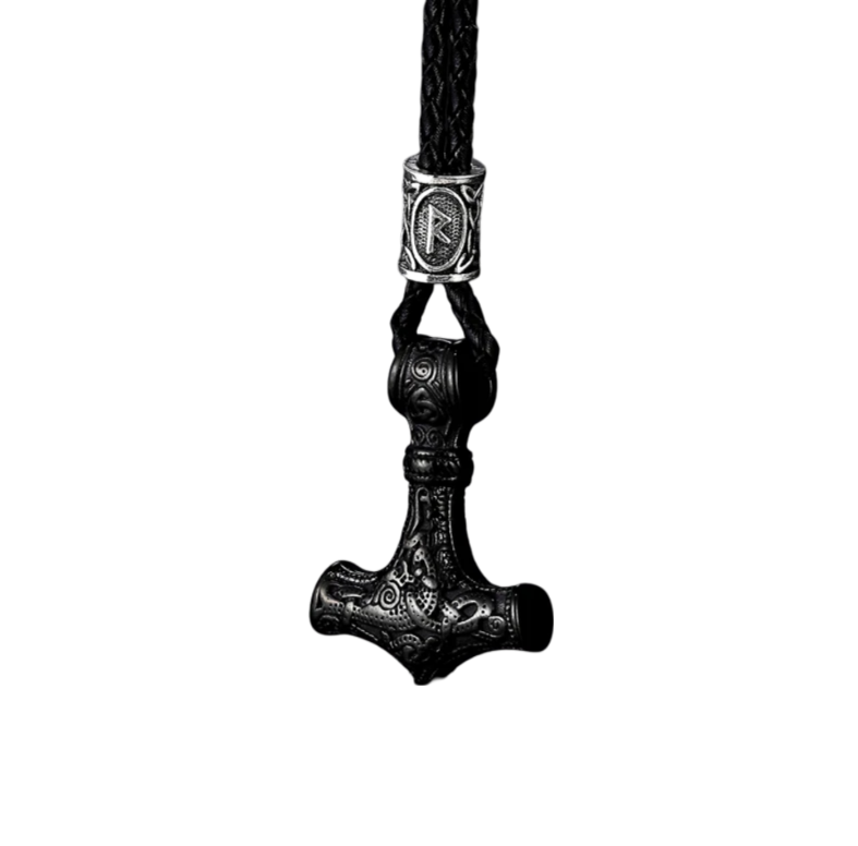 Produktinformationen "Nordische Halskette Thors Hammer Keltisch Mjölnir Vegvisir Wikinger schwarz 60 cm"