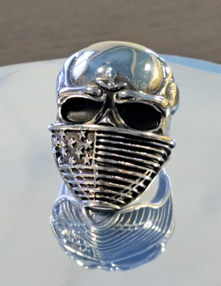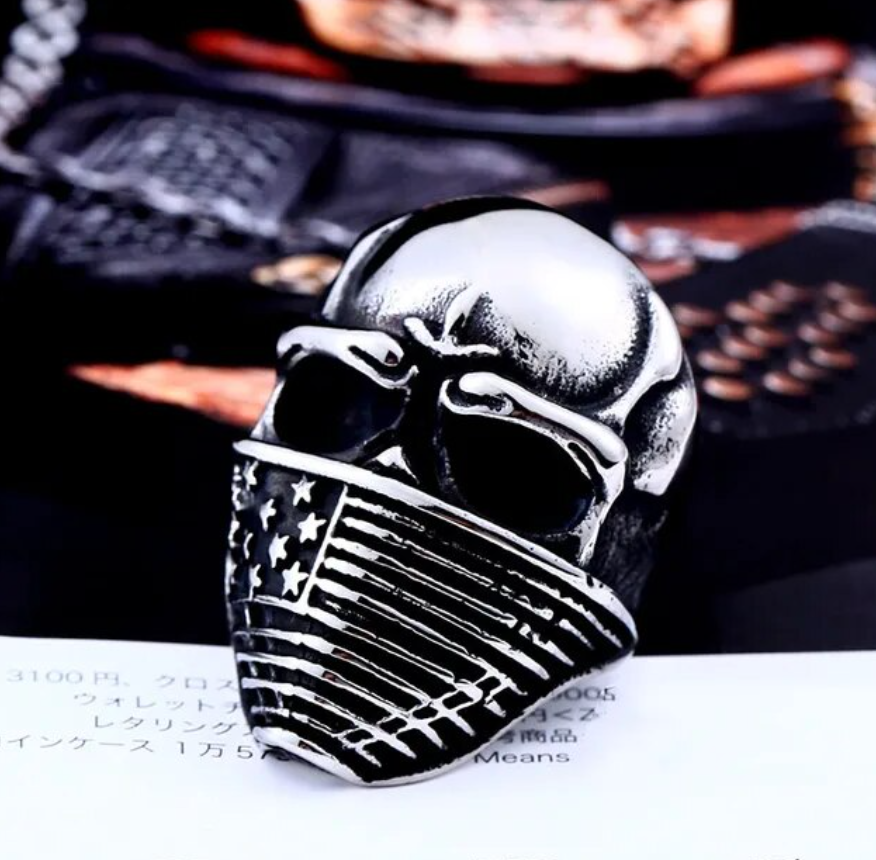 Ring American Totenkopf Biker USA Flagge Siegelring Edelstahl riesig