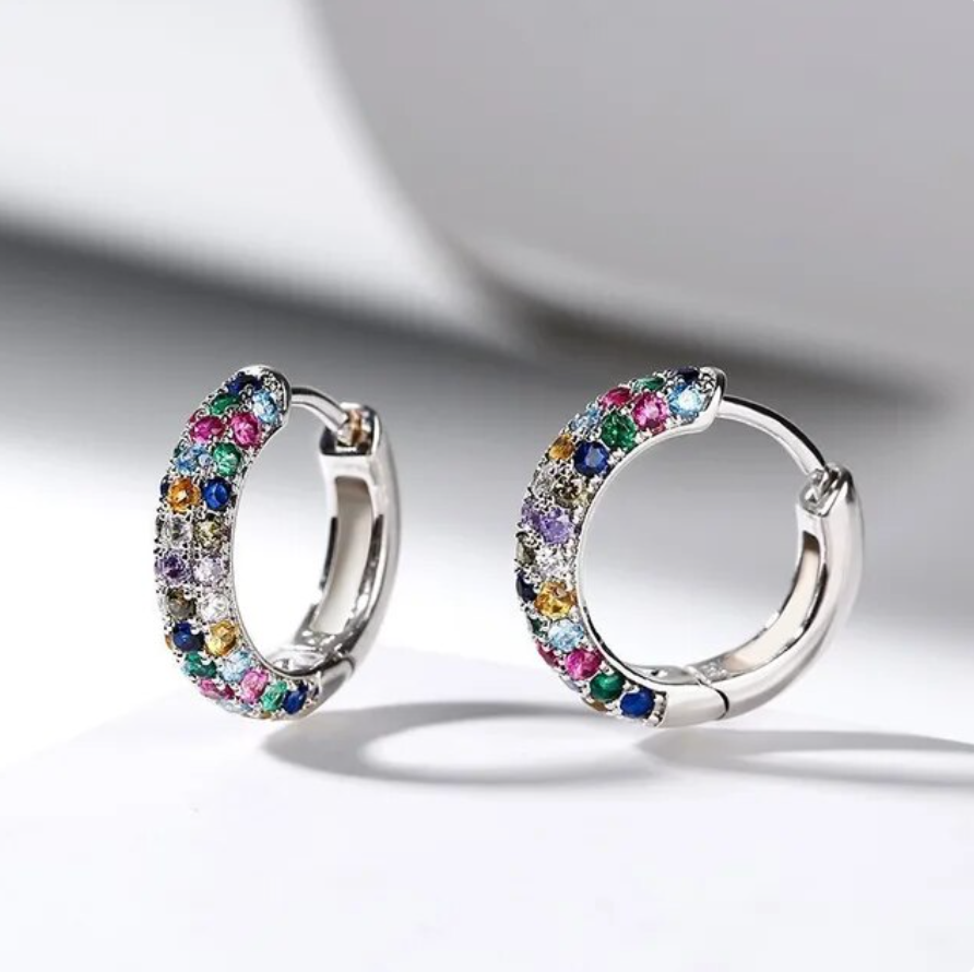 Schicke Ohrringe Creole Schmuck bunte Strasssteine Weißgold plattiert vergoldet