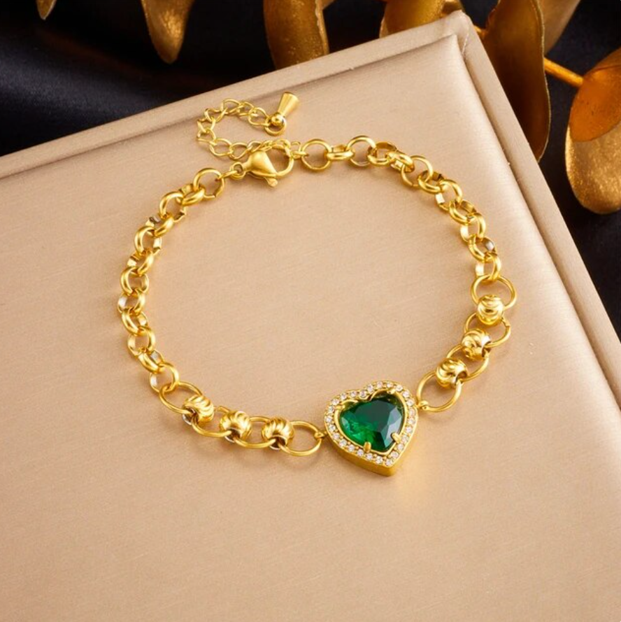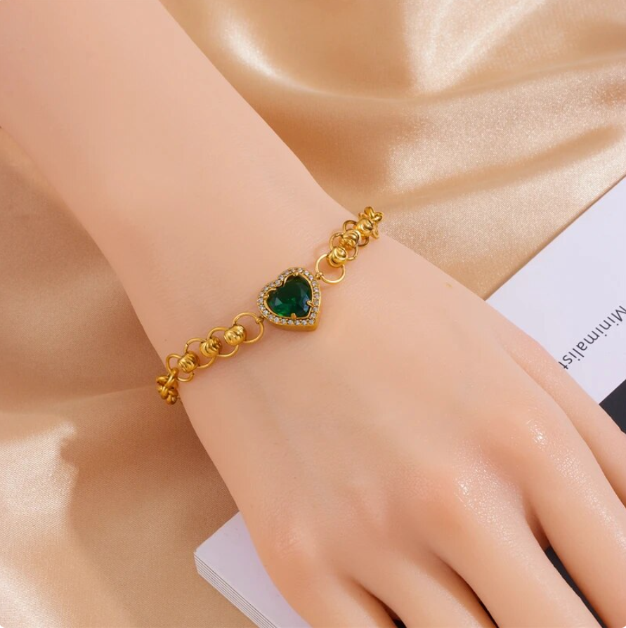 Schönes Armband Herz Schmuck Strasssteine Gold plattiert (vergoldet) Grün