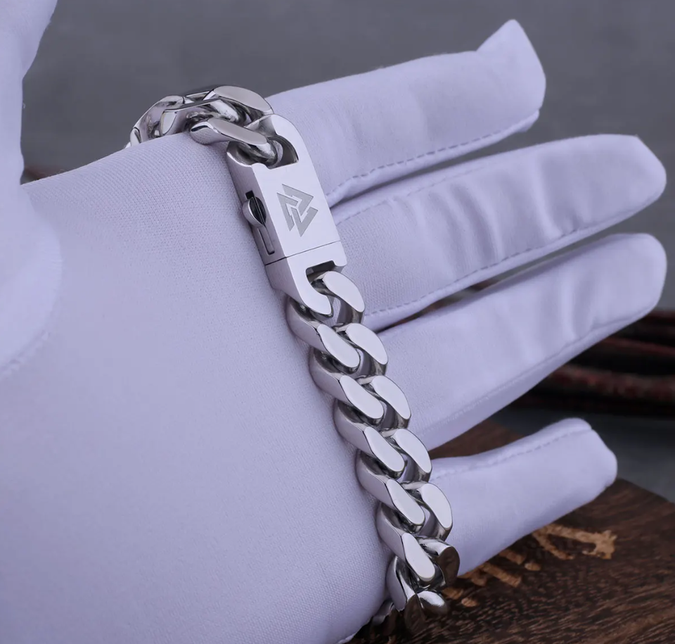 Valknut robustes Armband Edelstahl Wikinger kubanische Kette Silber Herren