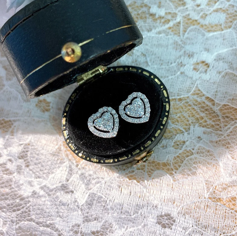schöne Ohrringe Schmuck Herz Zirkonia Ohrstecker Weißgold plattiert (vergoldet)