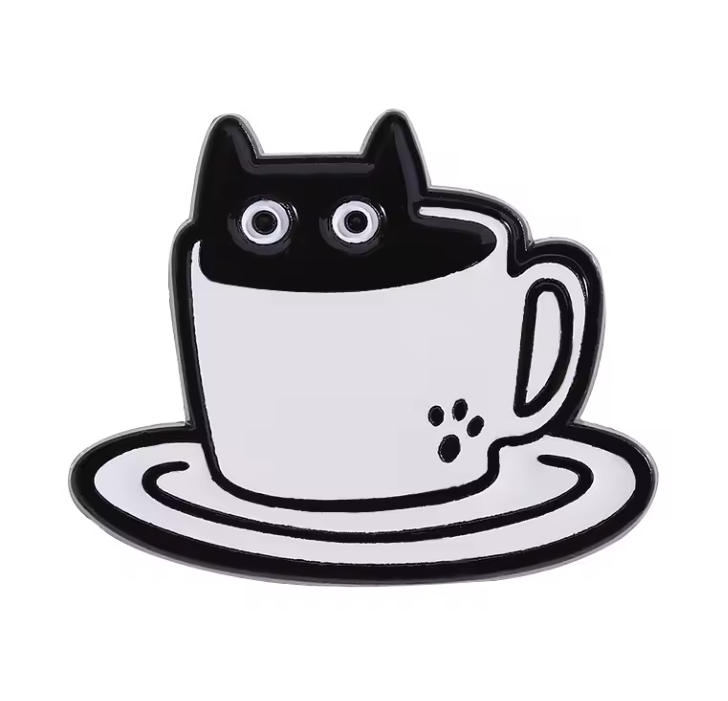 Anstecker-Set „Schwarze Katzen & Drinks“ – 4-teiliges Set aus Metall