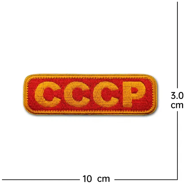 Schlichter, aber markanter Aufnäher in kräftigem Rot mit der gelben Aufschrift CCCP. Ideal zur Verzierung von Kleidung, Taschen oder als Ergänzung für Sammler – vielseitig einsetzbar für kreative DIY-Projekte oder Kostüme.