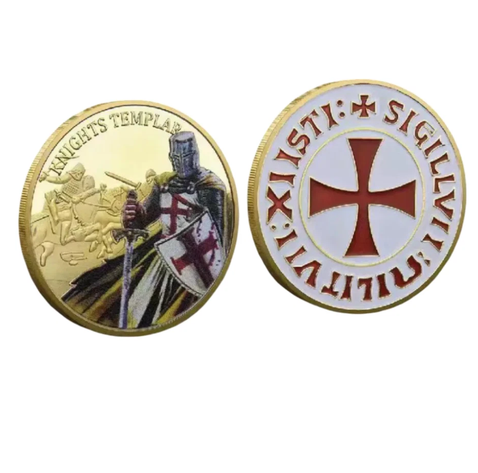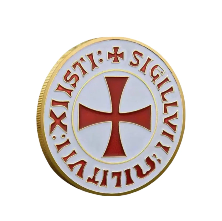 Ein kraftvolles Symbol für Glaube, Ehre und Kampfgeist! Diese beeindruckende Challenge Coin ist dem legendären Templerorden gewidmet. Die Vorderseite zeigt eine plastische Darstellung eines Ritters in voller Rüstung mit Schwert und Schild vor einer berittenen Truppe. Die Rückseite präsentiert das ikonische rote Tatzenkreuz auf weißem Grund, umrahmt von einem lateinischen Siegel-Schriftzug.