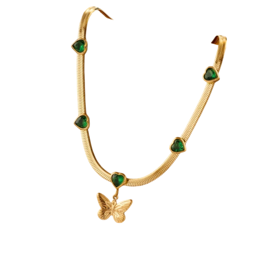 Halskette Schmetterling Herz grün Edelstahl Gold plattiert (vergoldet)