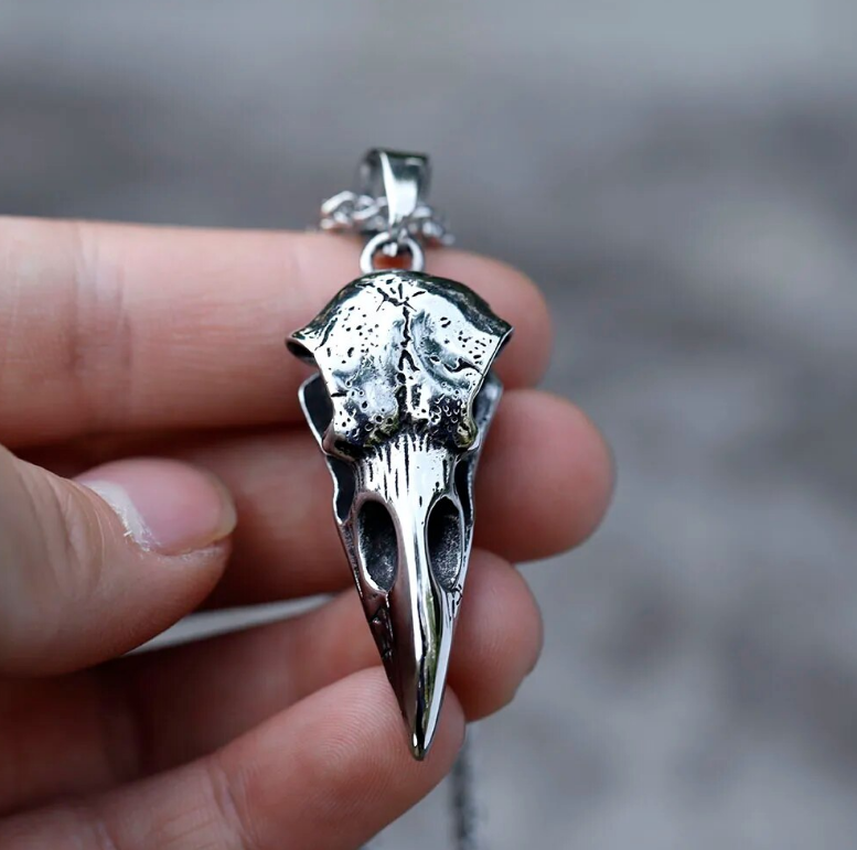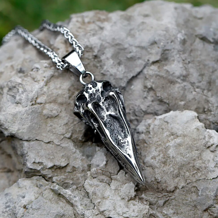 Nordische Halskette Krähe Schädel Wikinger Anhänger Kette Edelstahl silber 60 cm