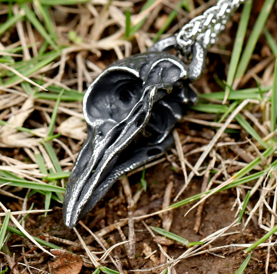 Nordische Halskette Rabe Schädel Wikinger Anhänger Kette Edelstahl silber 60 cm