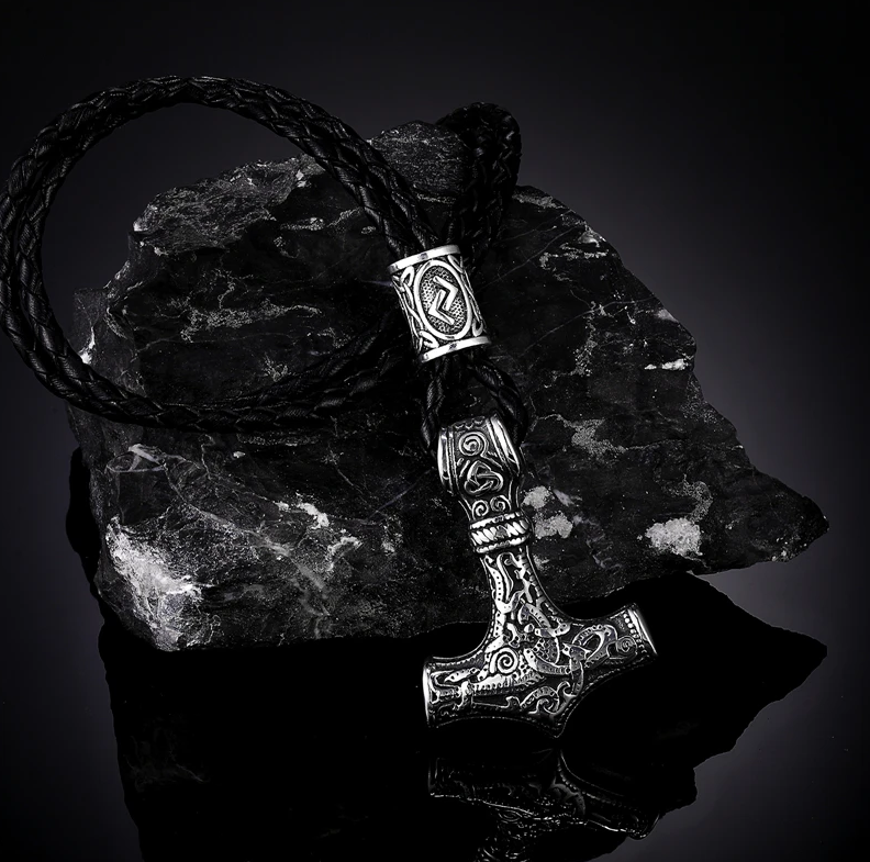 Nordische Halskette Thors Hammer Keltisch Mjölnir Vegvisir Wikinger schwarz 60 cm