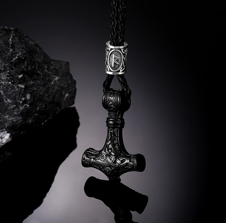 Produktinformationen "Nordische Halskette Thors Hammer Keltisch Mjölnir Vegvisir Wikinger schwarz 60 cm"