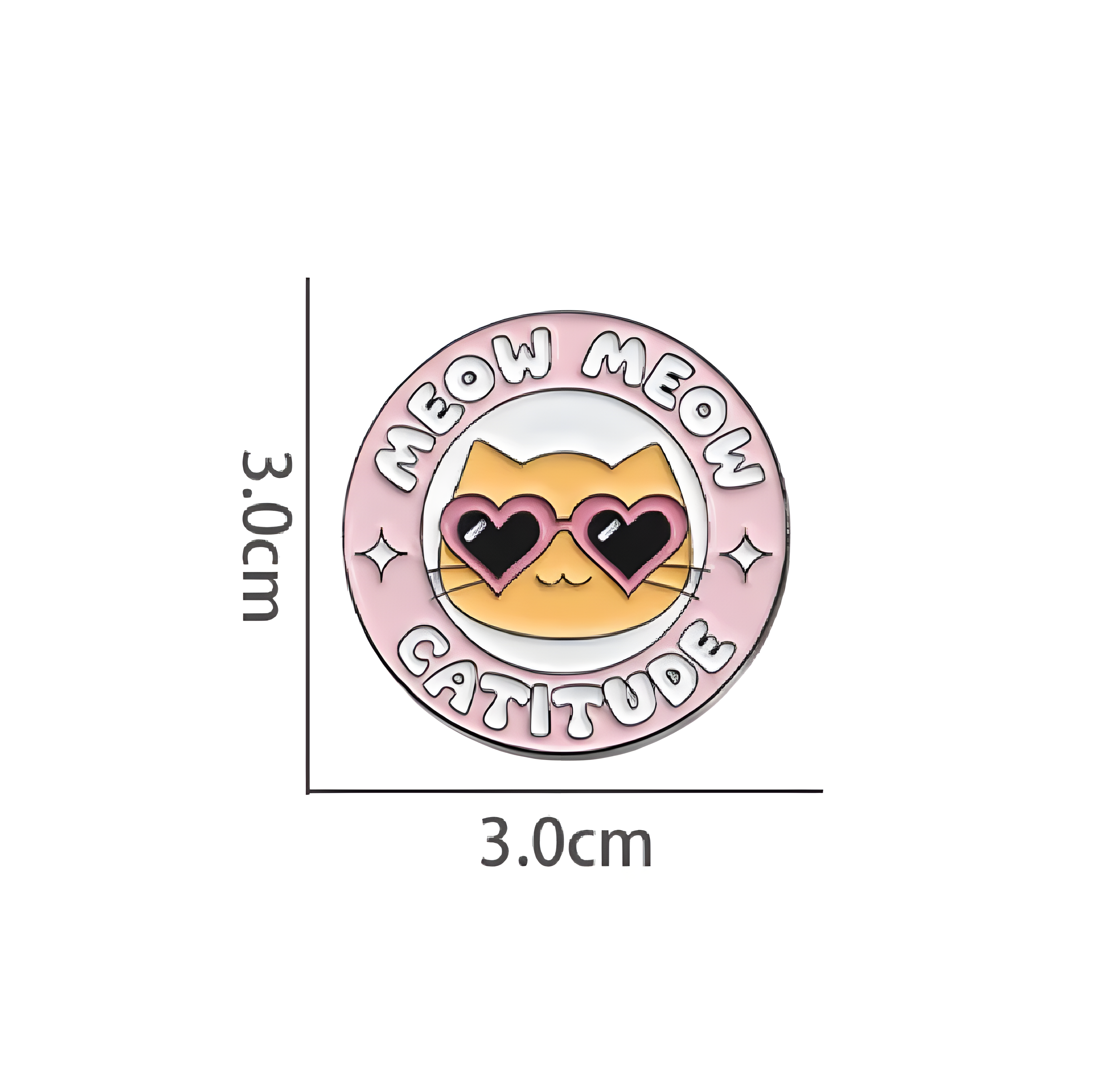 Dieser Pin versprüht puren Charme und Selbstvertrauen! Der runde Anstecker zeigt ein lässiges Katzen-Gesicht mit einer markanten, pinkfarbenen Herz-Sonnenbrille, eingebettet in den Schriftzug „MEOW MEOW CATITUDE“. Perfekt für alle, die ihren eigenen Stil zelebrieren und zeigen möchten, dass sie die Welt (und das Leben) mit einer ordentlichen Prise „Catitude“ betrachten.