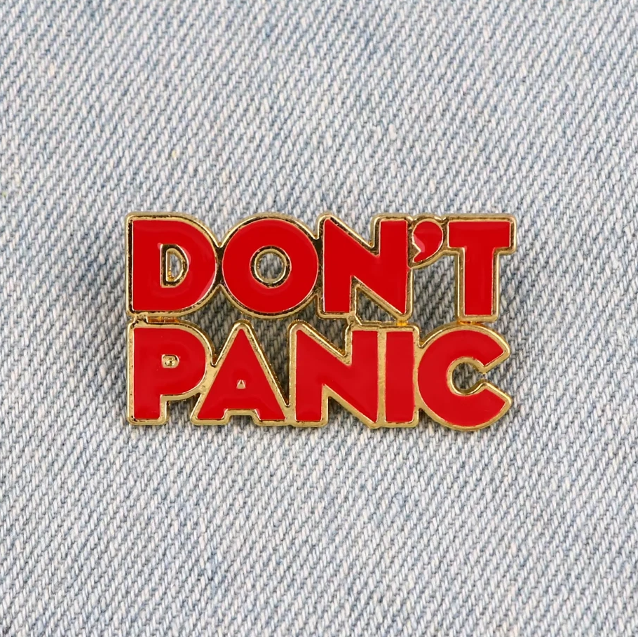 Pin „Don't Panic“ – Markanter Anstecker in Signalrot & Gold