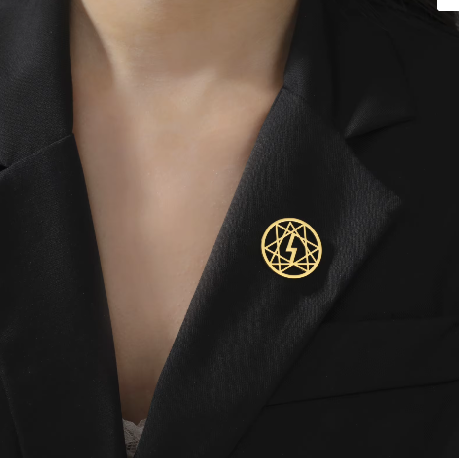 Ein ausdrucksstarkes Symbol in edlem Gewand! Dieser filigrane Metall-Anstecker vereint die Dynamik eines Blitzes mit einem geometrischen Liniengeflecht, das an klassische keltische Knotenmuster erinnert. Durch das offene Cut-out-Design und das glänzende Gold-Finish wirkt der Pin wie ein hochwertiges, modernes Amulett mit nordischer Ausstrahlung.