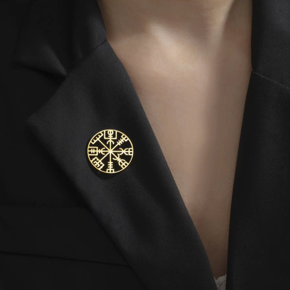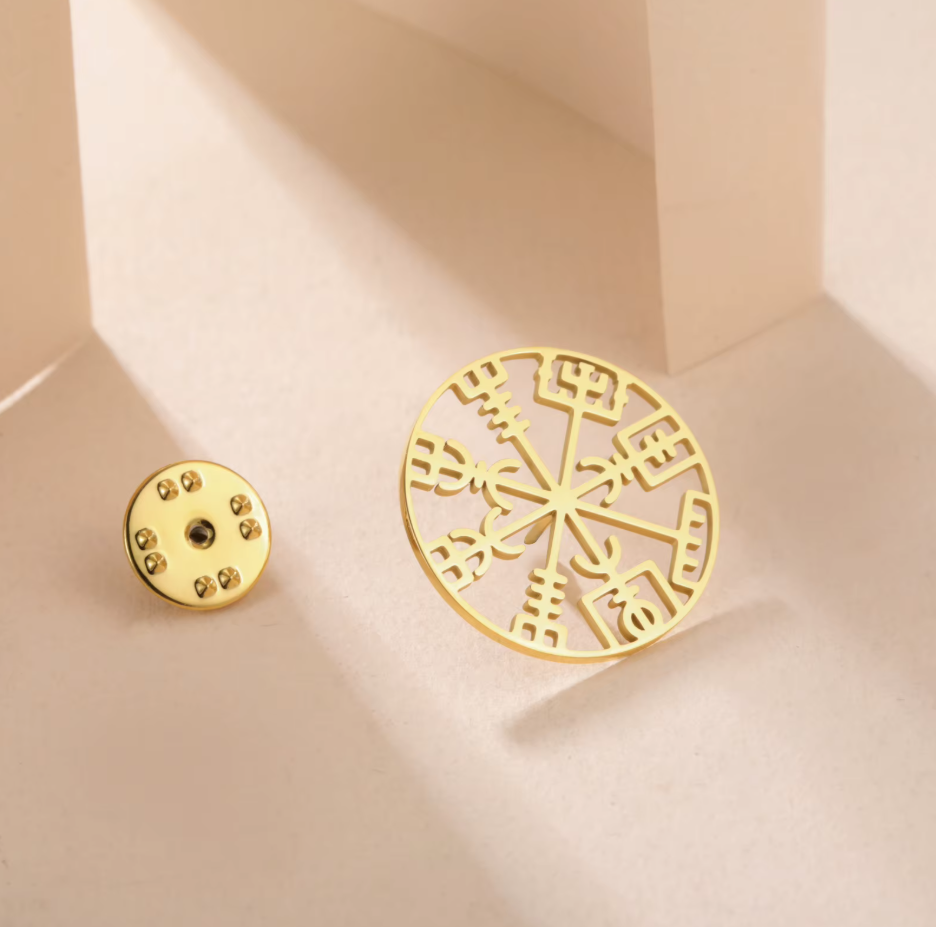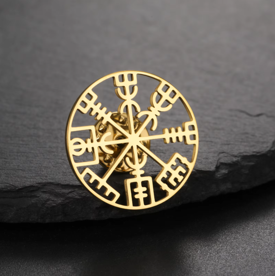 Pin „Vegvísir – Wikinger Kompass“ – Nordisches Schutzsymbol in Gold-Optik