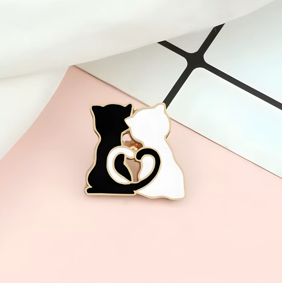 Produktinformationen "Pin Zwei Katzen in Schwarz & Weiß – Niedlicher Katzen Anstecker"