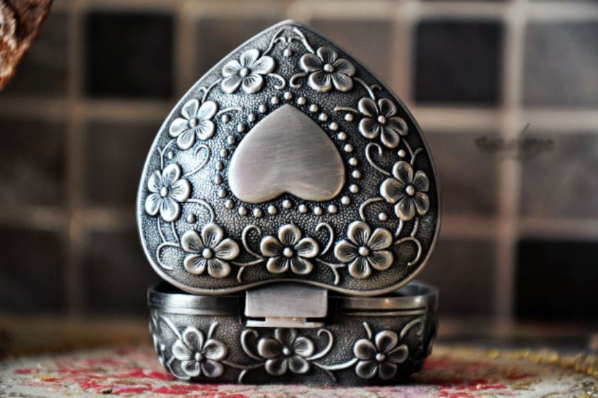 Produktinformationen "Retro Metall Schmuckkästchen Schmuckdose Schatulle Geschenkdose Gothic Herz"