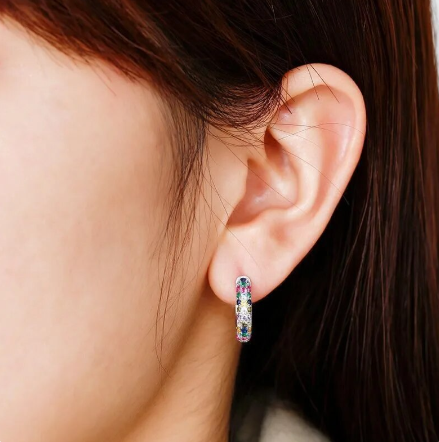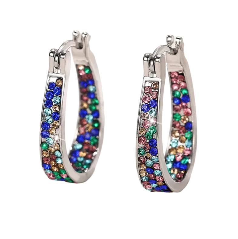Schicke Ohrringe Creole Schmuck bunte Strasssteine Weißgold plattiert vergoldet