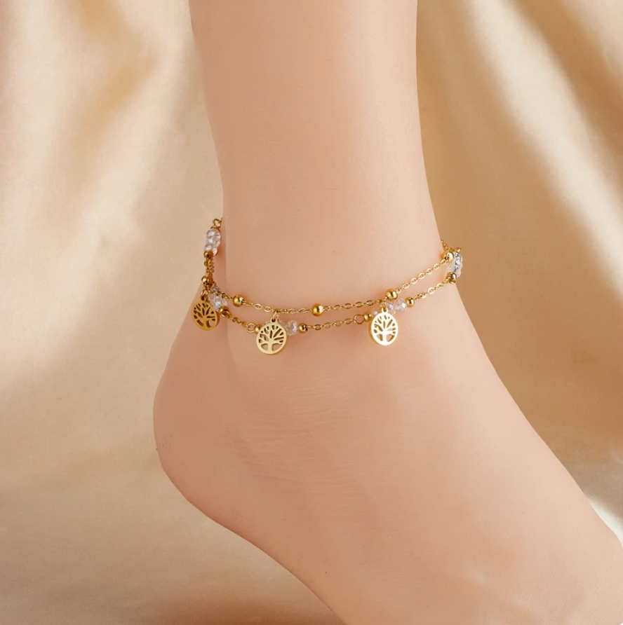 Schöne Fußkette Baum des Lebens Schmuck Gold plattiert (vergoldet)