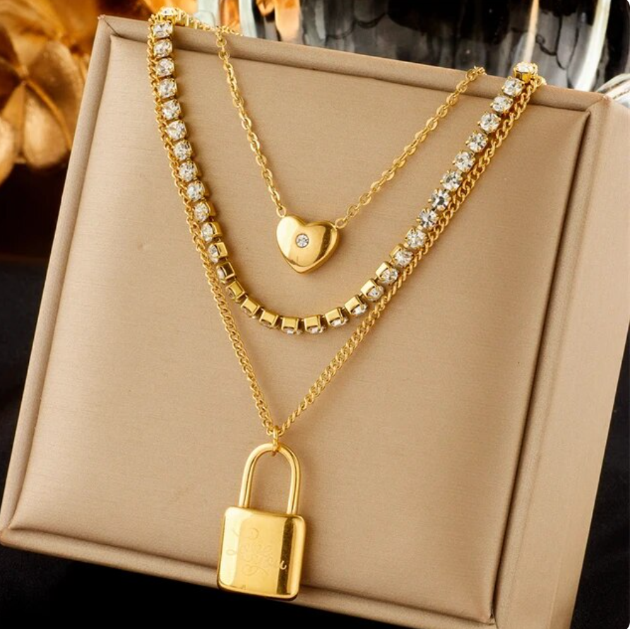 Schöne Halskette Schloss Herz Schmuck Gold plattiert (vergoldet)