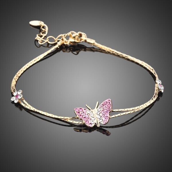 Schönes Armband Schmetterling Schmuck Gold plattiert (vergoldet) Rosa