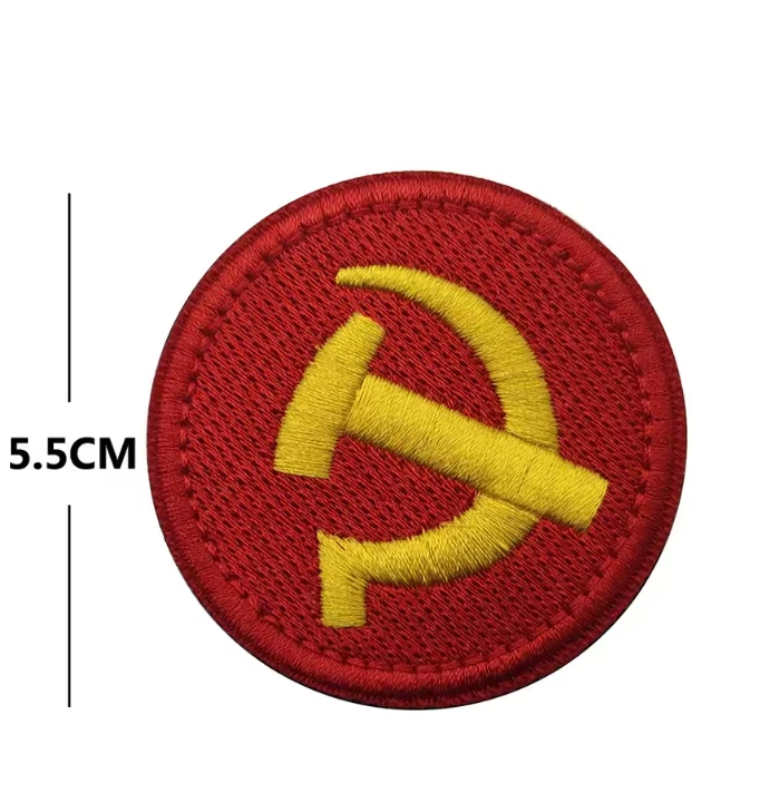 Dieser runde Aufnäher mit dem klassischen Hammer-und-Sichel-Motiv in Gelb auf rotem Grund ist ein auffälliges Accessoire für Sammler, Retro-Fans oder kreative DIY-Projekte. Das kommunistische Symbol ist detailreich gestickt und eignet sich perfekt für Jacken, Rucksäcke oder als Sammlerstück.