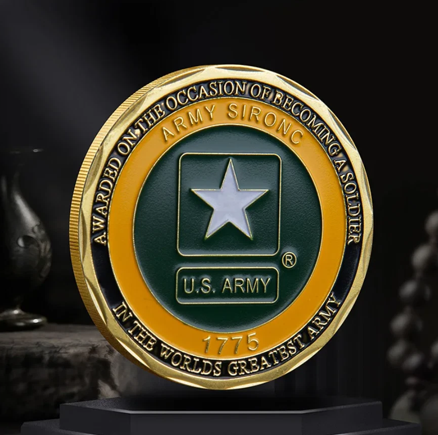 Ein Tribut an die „World's Greatest Army“! Diese beidseitig massiv geprägte Münze ist der Stolz und die Tradition der US-Armee eingefangen in Metall. Die Vorderseite zeigt das moderne US Army Logo mit dem „Army Strong“-Schriftzug vor einem tiefgrünen Hintergrund. Auf der Rückseite prangt das offizielle Siegel der United States Army, umrahmt von den sieben Kernwerten, die jeden Soldaten leiten.