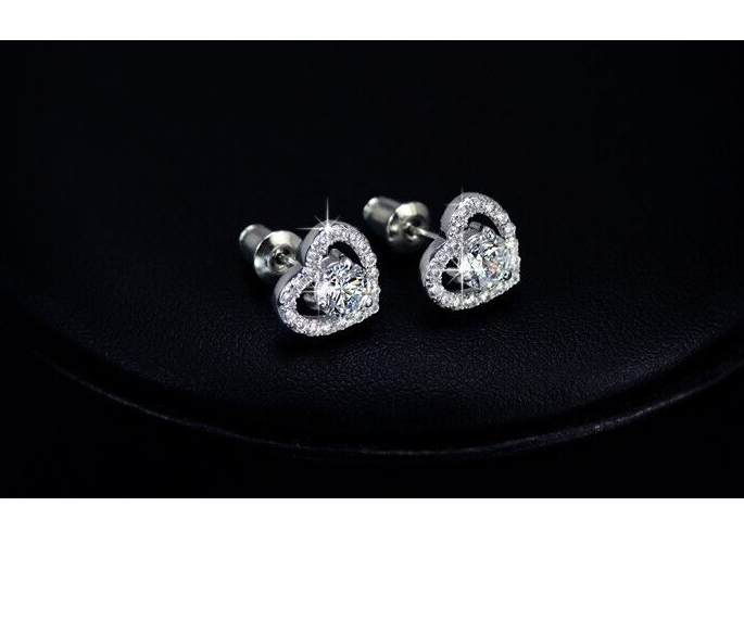 süße Ohrringe Schmuck Herz Zirkonia Ohrstecker Weißgold plattiert (vergoldet)